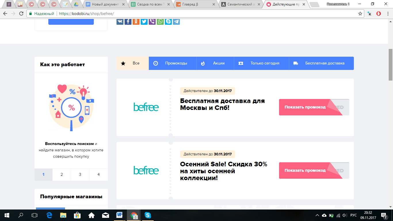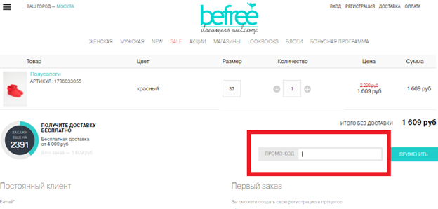 - используйте промокоды «Befree».